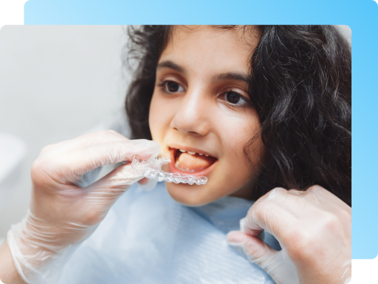 Con alineadores transparentes hechos a la medida, Invisalign First® guía suavemente el desarrollo de la sonrisa de tu hijo mientras crece, ayudando a corregir problemas dentales de forma temprana y efectiva.