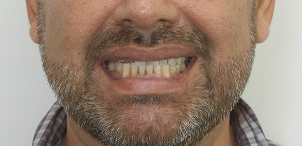 Tiempo de tratamiento 7 meses. Objetivo: Eliminación de apiñamiento anterior por recidiva de tratamiento de ortodoncia previo.