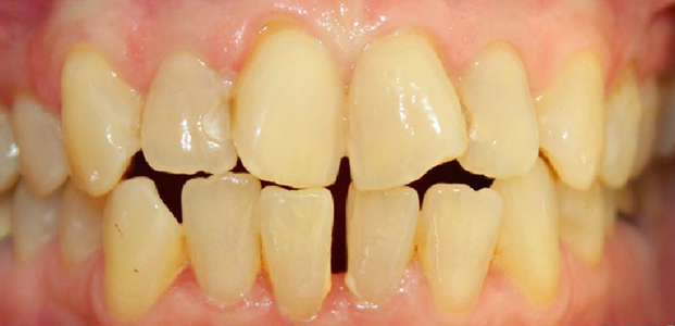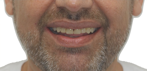 Tiempo de tratamiento 18 meses. Objetivos: cierre de espacios anteriores y rehabilitación con composites en sector anterior superior debido a su anatomía irregular.
